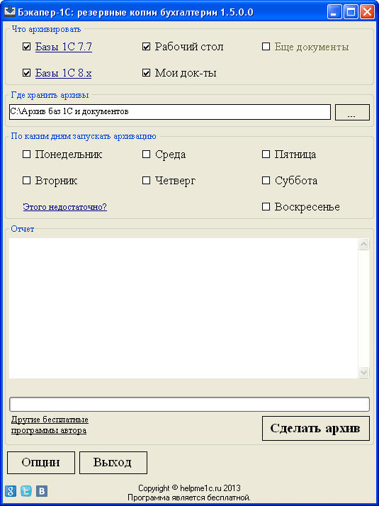 Bekaper-1C accounting backups - very reliable, but at the same time easy to use