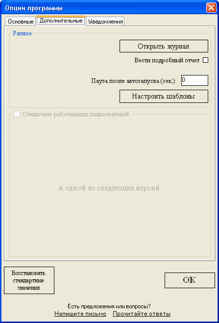 - If you start the backup is found that the place of the backup is not available (for example, an external hard drive that is not yet connected to the system) - the program enters the standby state, and does not write error. Changes in version 1.2: