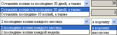 - In the program there was a flexible system to remove old copies. You can specify one of two main modes. "Leave a copy of the last X days" or "Leave the latest X copies" In addition to this you can leave «Y last copy of every month" or «Y last copy of each week." Two modes of removing copies of "cart" or "Permanently."